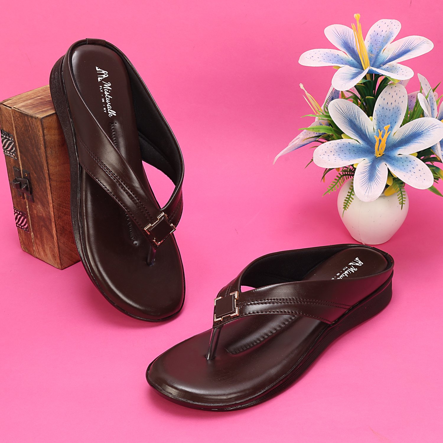 Upgrade your footwear collection with these elegant toe-ring flats that perfectly blend comfort and style. Designed with a smooth finish and a supportive sole, these flats ensure all-day ease whether you’re heading out for casual errands or a relaxed outing. The minimal yet sophisticated strap design is enhanced with a chic metallic detail, adding a touch of elegance without being overpowering. Lightweight and easy to slip on, these flats are ideal for modern women who value both fashion and functionality in their everyday footwear.